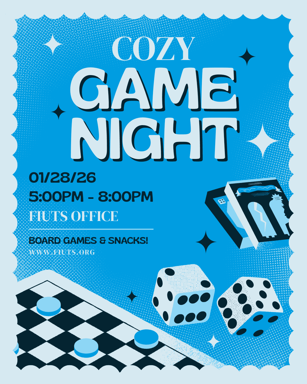 Promotional event flyer created for the Foundation for International Understanding Through Students (FIUTS) that warmly welcomes international students to build relationships through shared activities and group interaction.